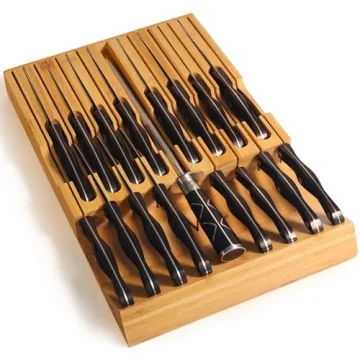 In-Drawer Bamboo Knife Block Holds 16 Knives and Sharpener