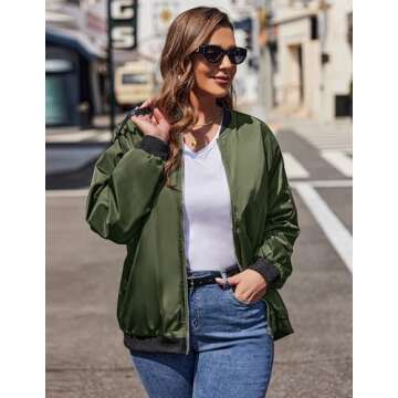 IN'VOLAND Womens Jacket Plus Size Bomber Jackets Lightweight with Pockets Zip Up Quilted Casual Coat Outwear