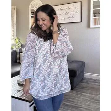 IN'VOLAND Womens Plus Size Boho Floral Print Tops Casual V Neck Long Sleeve Chiffon Blouses 2024 Summer Office Shirts