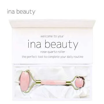 Ina Beauty Authentic Rose Quartz Roller Massager for Face and Neck: Sculpting, Slimming, Firming, Anti-Aging and Anti-Puffiness | Quality Welded Metal to Avoid Breakage Unlike Cheaper Models