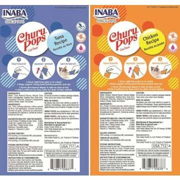 Show moreIntroducing the INABA Churu Pops Moist and Chewy Cat Treat 2 Flavor Variety Pack – the ultimate indulgence designed specifically for your feline friends. Each package contains 24 squeeze tubes filled with moisture-rich cat treats made from wholesome, human-grade ingredients. Whether your cat is a choosy licker or an adventurous chomper, these treats provide a delightful and interactive experience that caters to every cat's unique eating style. Infused with flavors that are as close to nature as possible, our Churu Pops include farm-raised chicken or wild-caught tuna, ensuring your pet receives the best in every bite.