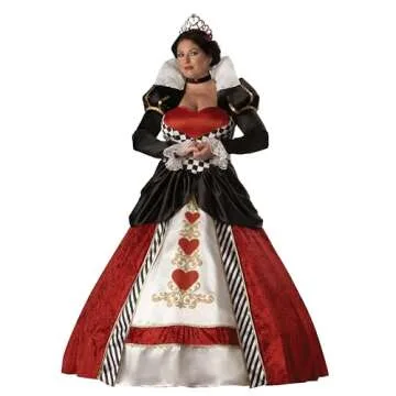 Show moreStep into a world of whimsy and enchantment with the InCharacter Costumes, LLC Women's Queen Of Hearts Costume, designed specifically for those looking to make a bold statement. This beautifully crafted costume features a full-length gown adorned with charming printed heart details, embellished with luxurious gold trim that catches the light beautifully, making you the center of attention at any event. Included in this exquisite ensemble is a generous hoop and tulle petticoat that adds volume and flair to the skirt, giving it that regal appearance. To complete your royal transformation, the costume also comes with a stunning velvet jeweled choker and an eye-catching sequined heart tiara, symbolizing your majesty. Whether you’re attending a themed party, cosplay event, or just looking to add some fun to your wardrobe, this costume leaves a lasting impression.