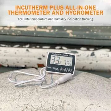 Incubator Warehouse IncuThermβ’ Plus Digital Thermometer and Hygrometer for Egg Incubator - Large Digital Display with Min/Max Memory - Remote Probe - Reads Celsius and Fahrenheit +/-1Β° 1109 IWTH01