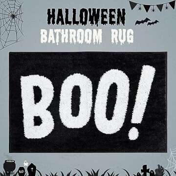 Show more Transform your bathroom into a festive haunt with the Indecor Home Halloween Bathroom Rug. Crafted from 100% microfiber, this bath rug not only boasts a whimsical Halloween spirit but is also super absorbent, efficiently trapping moisture to keep your bathroom floor dry and safe. With high-quality materials, you can trust that this rug will enhance your decor while providing practicality. Its fun designs, featuring everything from adorable pumpkins to friendly ghosts, capture the essence of Halloween, ensuring a delightful atmosphere for you and your guests.