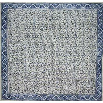 India Arts Hand Block Printed Floral Square Cotton Tablecloth 72" x 72" Blue