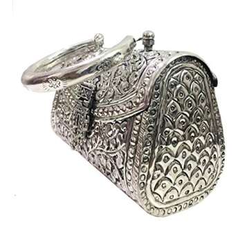 Indian Brass Clutch Silver white clutches Vintage Handmade Brass metal purse Hand clutch Handbag for women party Bride marriage clutch