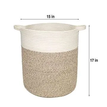 IndigoBea Cotton Rope Storage Basket -17"H x 15"D Extra Large Tall Laundry Clothes Hamper with Handles - Decorative Woven Basket -Designed for Kids Toys, Blanket, Nursery, Dorm, Bedroom, Living Room