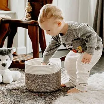 Show moreThe INDRESSME Woven Storage Basket is a versatile and stylish addition to your home organization needs. Crafted from soft cotton rope, this small round woven basket measures 9.4 x 7.1 inches, making it an ideal storage solution for an array of items. Its charming two-tone design features pure white on the top that blends beautifully with the warm brown bottom, creating a decorative yet functional piece that complements any interior decor.