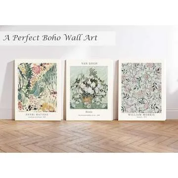 Induslyfe Framed Sage Green Vintage Wall Art Canvas Decor Set of 3, Matisse Wall Art Prints Posters Mid Century Modern Art, Aesthetic Floral Botanical wall art for bedroom, living room, bathroom 12x16