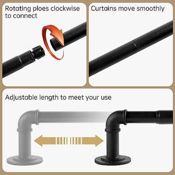 Show moreTransform your living space with our Industrial Curtain Rods for Windows, designed to elegantly blend functionality and style. Crafted with durable aluminum alloy ends, robust steel poles, and secure steel brackets, these curtain rods can effortlessly support heavy draperies of up to 30 pounds. The 7/8 inch diameter ensures that your curtains hang perfectly and can be easily maneuvered, giving an upscale touch to any room.