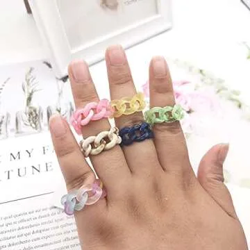 The **INENIMARTJ Colorful Resin Chunky Chain Rings** are particularly fantastic for multiple occasions. Each ring set serves as a delightful gift, ensuring your loved ones feel cherished every time they wear them. These rings are exceptional for notable events such as: