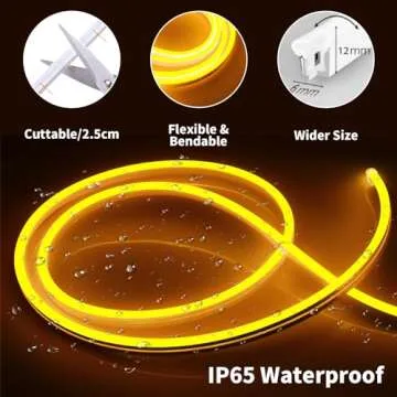 iNextStation Neon Led Strip Lights Yellow, 16.4ft/5m Neon Light Strip 12V Silicone Waterproof Flexible LED Neon Lights for Bedroom Festival Party Neon Sign DIY Decor (Power Adapter not Included)