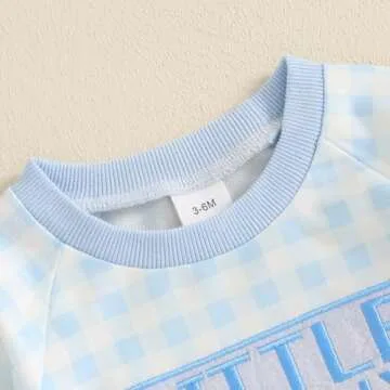 Infant Baby Boy Easter Outfit Plaid Little Bunny Long Sleeve Romper One Piece Jumpsuit Easter Boy Clothes (Blue-Little Bunny, 3-6 Months)