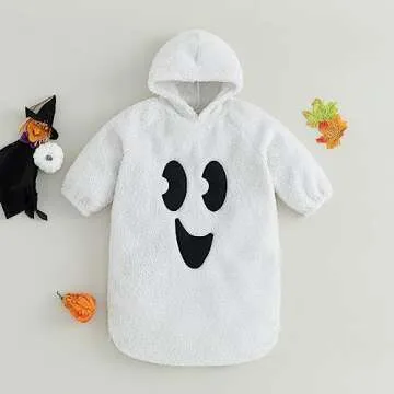 Infant Baby Girl Boy Halloween Outfits Long Sleeve Jumpsuit Ghost Romper One Piece Fall Winter Hoodie Bodysuit (White, 0-3 Months)