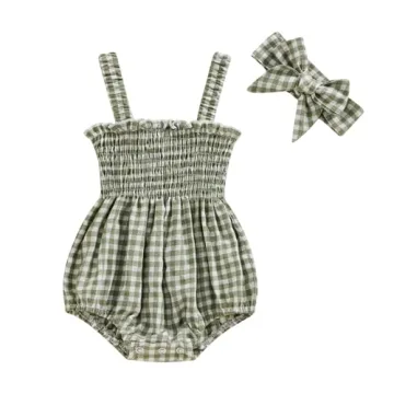 Show moreIntroducing the enchanting Infant Baby Girl Summer Outfit Clothes Sleeveless Smocked Cotton Linen Romper with Headband, perfect for your little ray of sunshine! Crafted with care from a soft and luxurious cotton blend, this romper radiates comfort while offering an effortlessly stylish look. Ideal for warm summer days, the breathable fabric ensures that your baby girl stays cool and comfortable, even during her most adventurous playdates. The charming backless and sleeveless design not only keeps her looking adorable but also allows for optimal airflow, making it a must-have for your little one’s summer wardrobe.
