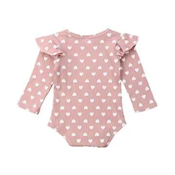 Infant Girl Romper Ruffle Long Sleeve Bodysuit Newborn Baby One-Piece Outfits (Heart-Pink, 6-12m)