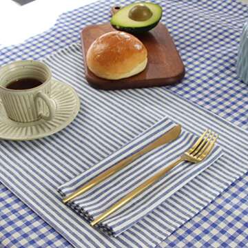 INFEI Plain Striped Cotton Linen Blended Dinner Cloth Napkins - Set of 12 (40 x 30 cm) - for Events & Home Use (Blue)