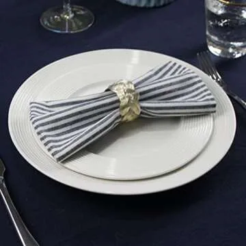 INFEI Plain Striped Cotton Linen Blended Dinner Cloth Napkins - Set of 12 (40 x 30 cm) - for Events & Home Use (Navy)