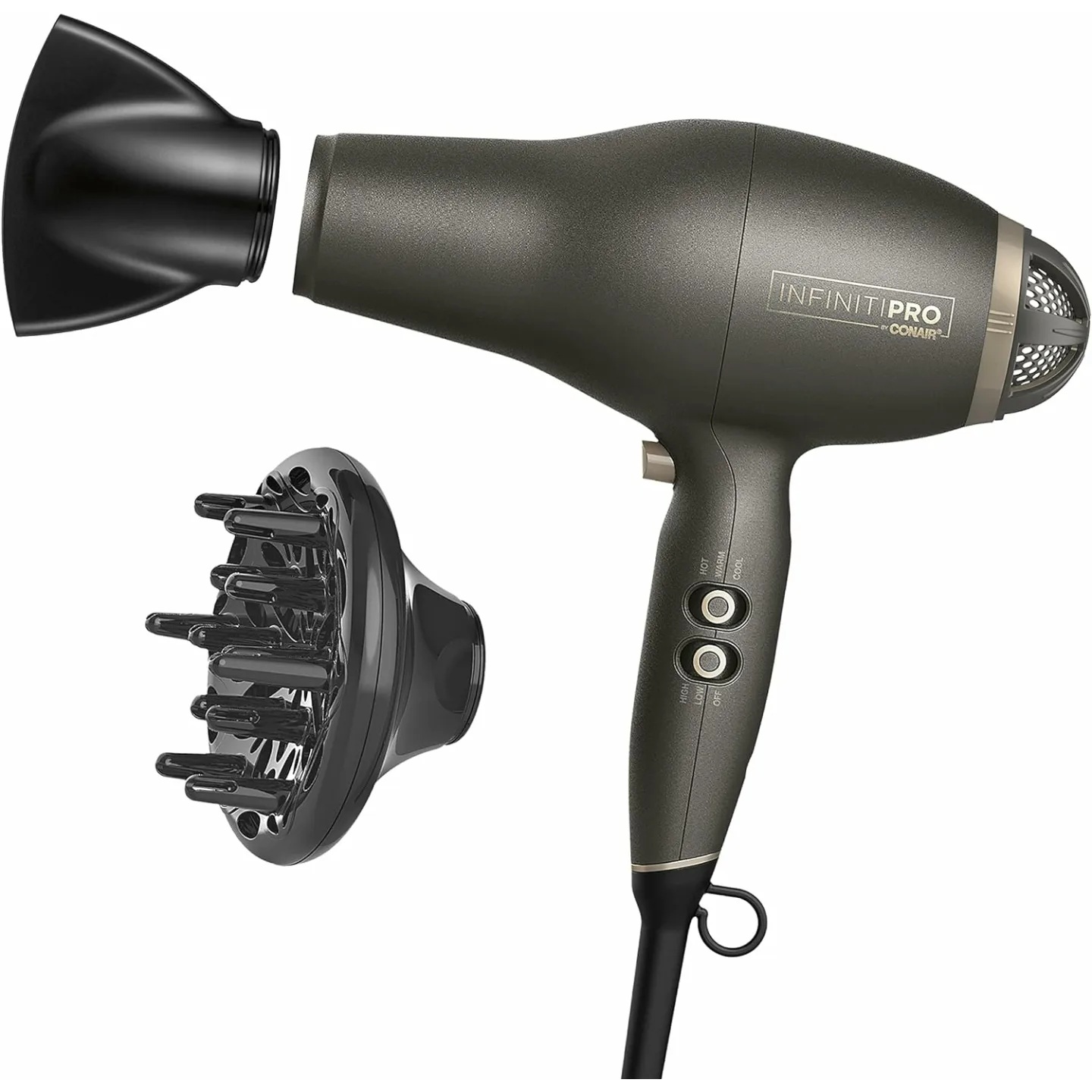 Show moreBuy the INFINITIPRO BY CONAIR FloMotion Pro Hair Dryer and personalize your drying experience with ultimate flexibility and control. This top-notch professional hair tool features adjustable airflow, allowing you to cater to your unique hair styling needs. With a quiet yet powerful motor, the FloMotion Pro Hair Dryer significantly cuts down drying time, ensuring your hair remains frizz-free and beautifully styled. The package includes essential attachments like a diffuser and concentrator, making it a versatile addition to your hair care routine. Built with quality in mind, this hair dryer promises durability and efficiency, delivering salon-quality results from the comfort of your home. The separate fan speed and heat level switches give you precise control over your styling process, making this dryer an excellent value for its price. Invest in the INFINITIPRO BY CONAIR FloMotion Pro Hair Dryer and experience professional-grade styling every day.
