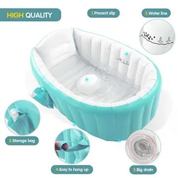 Safety is paramount, and that's why this tub features a non-slip textured bottom to keep your baby securely in place. Enjoy peace of mind while your little one splashes and plays. Give your baby the gift of comfort, safety, and joy with the Inflatable Baby Bath Tub—where bath time becomes a fun adventure!
