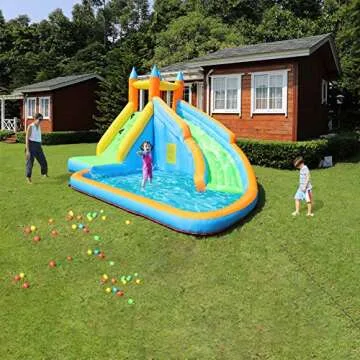 But this product doesn't merely entertain; it fosters physical activity, promotes social interaction, and inspires imaginative play. Parents will delight in watching their kids dash up the colorful slide and delight in splashes as they bounce into the inflatable pool below. What more could you ask for to enhance your family’s quality of playtime?