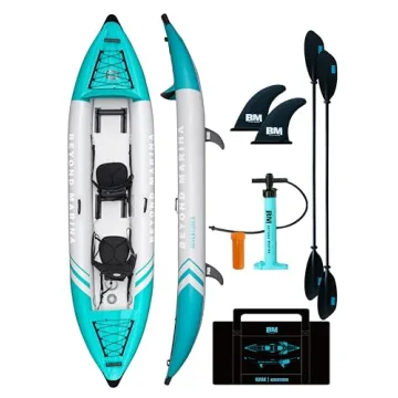 Show more Unleash your inner adventurer this summer with the Beyond Marina Inflatable Kayak, a stunningly crafted tandem kayak offering endless exploration possibilities on any body of water. Weighing a mere 25.35 pounds, this kayak is designed for effortless transport and rapid inflation, making it the perfect companion for spontaneous beach getaways or serene afternoons on the lake. What truly sets this kayak apart is its state-of-the-art drop-stitch bottom technology, enabling it to inflate to a remarkable 8 PSI in under five minutes, maximizing your time out on the water and minimizing setup hassles. At an impressive 12.5 feet in length, there’s plenty of space for two passengers along with necessary gear, comfortably supporting a fantastic weight limit of 440 pounds.