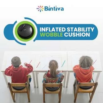 Show more Introducing the Balance Disc, an innovative tool designed to enhance your core stability, strengthen muscle tone, and improve balance and body posture. This versatile cushion functions as a wiggle seat, providing sensory input that can calm children who find it hard to remain still. Made for both adults and children alike, it offers ergonomic seating that alleviates back pain and shoulder aches, making it a perfect companion for long hours of sitting, whether in school, at the office, or during road trips.