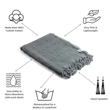 Show moreIntroducing the InfuseZen Stonewashed Turkish Bath & Beach Towel, your new go-to essential for luxurious comfort and versatile functionality. Crafted from GOTS Certified 100% organic Turkish cotton, this towel features extra-long staple fibers that create an incredibly smooth and soft texture. With a spa-like feel that becomes softer with each wash, it’s designed to elevate your bathing and beach experiences. Experience ultimate indulgence wrapped in the comforting embrace of organic cotton that enhances your skin every time you dry off.