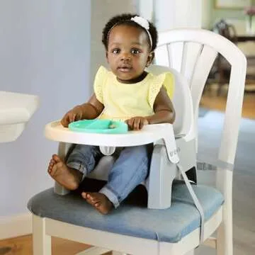 Show more The Ingenuity Deluxe Learn-to-Dine Feeding Seat is an innovative solution designed to transform mealtime experiences for both infants and toddlers. This versatile feeding chair doubles as a booster seat, allowing your child to join family dining at the table while making mealtimes less messy. With its compact design, this feeding seat conveniently fits under most tables, eliminating the bulkiness associated with traditional high chairs. It's equipped with a modern aesthetic that complements any kitchen decor, ensuring that it not only serves a functional purpose but also enhances your space.