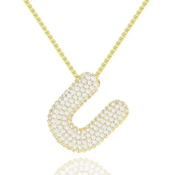Initial Necklaces for Women, Gold Dainty Balloon Bubble Necklace Letter U Pendant CZ Women Gifts for Teen s Birthday Christmas Anniversary Jewelry