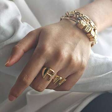 Initial Rings Letter Rings for Women Chunky Adjustable Rings Women Statement Rings , Gold-K