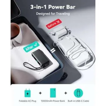 Designed for the traveler, its compact form easily fits into bags or even your pocket, making it a must-have for those spontaneous trips. With the ability to charge up to four devices simultaneously—thanks to its integration of a USB-C port, a USB-A port, and a built-in USB-C cable—this device will ensure you’re always powered up.
