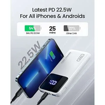 Show more Introducing the INIU Portable Charger — your ultimate solution for on-the-go power! With a stellar reputation as the SAFE Fast Charge Pro, trusted by over 38 million global users, this compact device enhances your charging experience like never before. Imagine charging your iPhone from 0 to 54% in just 25 minutes, thanks to cutting-edge PD 3.0 & QC 4+ fast charging technologies, which are 2X faster than standard chargers.