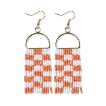 Elevate your game day style with these stunning orange and white checkered boho earrings from INK+ALLOY. Handmade with precision, these dangle earrings feature a beautiful cascade of vibrant beads, combining team spirit with on-trend boho fashion. Crafted on brass arch hooks, they're not only stylish but also durable and lightweight, making them perfect for all-day wear. Whether you're cheering on your favorite team or adding a pop of color to your everyday outfit, these earrings are a must-have accessory.