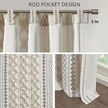 Show moreTransform your living space into a cozy sanctuary with the exquisite INK+IVY Imani window panel. Crafted from 100% soft cotton, this single panel curtain offers a perfect balance of style and functionality that enhances any interior decor. With its elegant ivory hue and sophisticated geometric print, the Imani panel is designed not just to filter light but to elevate your home’s aesthetic in a subtle yet impactful way. Experience the seamless blend of beauty and practicality, allowing the enchanting fabric to gently illuminate your space while maintaining valuable privacy.