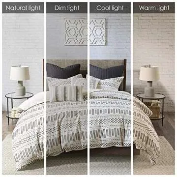 Show more Transform your bedroom into an inviting sanctuary with the **INK+IVY Rhea Duvet Cover Set**. This exquisite design marries modern style with cozy farmhouse charm, featuring a captivating **geometric clipped jacquard** pattern that blends beautifully with any decor. Its ivory tone is accentuated by horizontal stripes of darker hues, creating visual interest complemented by delicate eyelash-like woven details. Crafted from **100% cotton**, this duvet cover set ensures a soft and breathable sleep environment, making it perfect for all seasons.