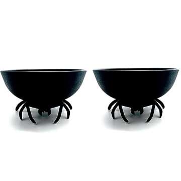 Show moreGet ready for the spookiest season of the year with the InkedSky Halloween Spider Bowls Set. Designed with a wickedly fun aesthetic, these candy dishes are perfect for adding a touch of frightful flair to your Halloween festivities. Each bowl features an impressive 8" circumference and is 3" deep, making them the ideal size for holding a hauntingly generous amount of treats, candies, or snacks for your little ghosts and goblins. The black plastic design is not only durable and practical but also elegantly spooky, fitting seamlessly into any Halloween decor.