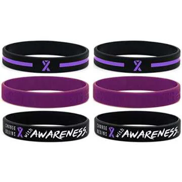 Inkstone (6-pack) Purple Awareness Ribbon Bracelets - Silicone Rubber bands Wristbands to Symbolize Hope, Courage, Strength, and Raise Awareness For Suicide Prevention, Crohn's Disease, Alzheimer's, Lupus and Support Cancer Survivor