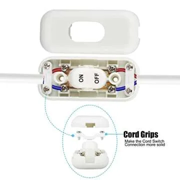 Show moreIntroducing the **PLUSPOE 2-Pack Inline Cord Switch** – the perfect solution for controlling your lamps and small appliances with ease and convenience. Designed for versatility, this switch is crafted from durable plastic that not only ensures longevity but is also anti-aging and heat-resistant. Whether it's for your bedside lamp, desk LED lights, or even small appliances, this inline switch can handle it all effortlessly. With a sleek white finish, it blends seamlessly into any decor while adding functionality to your home or office setup.