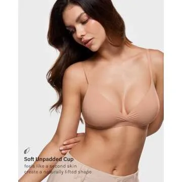 Show more Introducing the INLYRIC Women's Inbarely Triangle Bralette, an ingenious blend of style and comfort designed to redefine your everyday wear. This bralette is crafted from a buttery-soft stretchy fabric that feels like a second skin, offering a gentle embrace without compromising on support. Imagine slipping into something that feels weightless yet provides all the right places with the support they need—this is what the Inbarely collection promises. The max-stretch fabric, coupled with reinforced power mesh lining, ensures that your bust is comfortably supported, making it an ideal choice for all-day wear.