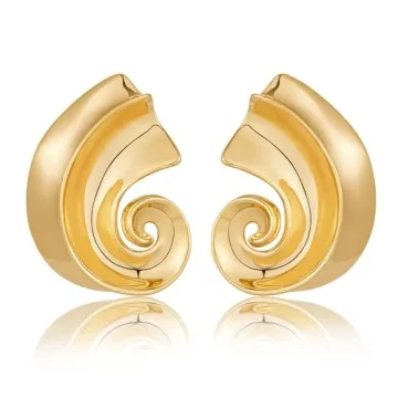 INNERDIVA Gold Spiral Conch Earrings - Chic Statement Jewelry for Trendy Women