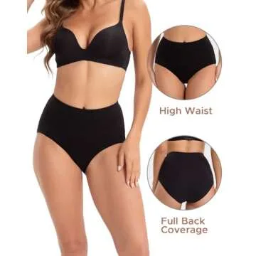 INNERSY Women's Underwear Cotton High Waisted Underwear Women Pack Briefs Ladies Cotton Panties 5 Pack(X-Large, Black)