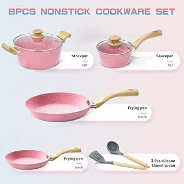 Innerwell Pots and Pans Set, 8 Pieces Non Stick Cookware Set, Pink Granite Stone Nonstick Cookware Set, Induction kitchen Cookware Sets, Cooking Set W/Frying Pan, Saucepan, Casserole, PFOA Free