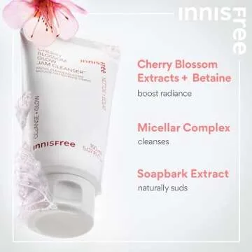 innisfree Cherry Blossom Glow Jam Cleanser, Sulfate Free, Korean Face Wash, Cleansing Foam for Glowing Glass Skin (Packaging May Vary)