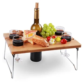 Show moreIntroducing the INNO STAGE Portable Picnic Table, your ideal companion for outdoor adventures. Designed with practicality and style in mind, this table measures 15" L x 11" W and features a thickness of 0.6 inches. Crafted from natural bamboo using a special vertical pressure craft, it ensures both sturdiness and a beautiful, uniform finish that harmonizes with any outdoor setting. Its lightweight construction makes it incredibly easy to transport, while features like carved slots keep your wine glasses and bottle suspended safely above any surface, preventing spills and elevating your dining experience wherever you are.