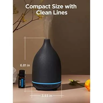 InnoGear Oil Diffuser, 150ML Ceramic Diffuser for Essential Oils Handcrafted Aromatherapy Diffuser Ultrasonic Cool Mist Humidifier with 2 Mist Modes Waterless Auto Off for Room Office, Black