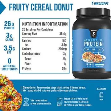 Show moreUnleash your inner strength with InnoSupps Advanced Iso Protein, a premium-quality whey isolate protein powder meticulously crafted for health-conscious individuals. This invigorating formula is not just about fueling your body; it’s about unlocking your potential. With an impressive 25 grams of protein per serving and absolutely NO fillers, you’re getting only the purest form of protein to support your muscle-building goals. The unique multistep purification process retains essential protein fractions, ensuring that each scoop is packed with the nutrients you need to achieve lean muscle growth. Say goodbye to artificial sweeteners and artificial ingredients, and embrace a clean supplement that aligns perfectly with your health and fitness journey.
