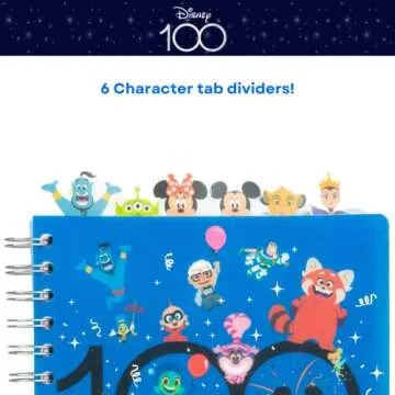 Show more Celebrate your love for Disney with the innovative Designs Disney 100 Anniversary Tab Journal Notebook. This enchanting journal features a vibrant blue vinyl cover adorned with iconic Disney characters, making it a must-have for fans of all ages. With its unique design, creativity flows seamlessly onto the 144 lined pages, where you can jot down your thoughts, stories, or dreams, accompanied by whimsical illustrations that keep the spirit of Disney alive on every page. The dimensions of 8x7 inches make it perfect for travel, school, or simply for keeping at your desk, allowing you to embark on imaginative journeys anytime, anywhere.