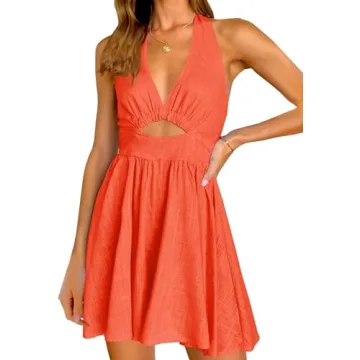 Show moreDive into summer with the Inorin Women’s Summer Sleeveless Halter V Neck Backless Cut Out Sexy Casual Party Swing Flared Mini Dress, the perfect addition to your wardrobe for all warm-weather occasions. This delightful dress combines a chic, sexy vibe with an elegant touch that makes it suitable for everything from casual outings to unforgettable parties. Featuring a stylish halter neck design and a flattering A-line silhouette, this dress brings out your best features while ensuring maximum comfort during those sun-soaked days. Crafted with attention to detail, it flaunts a v-neck cut and playful ruffles, effortlessly elevating your summer style while remaining casual enough for everyday wear.