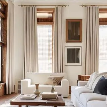 INOVADAY 100% Blackout Curtains for Bedroom, Black Out Curtains 96 Inch Long, Clip Rings Linen Blackout Drapes, Thermal Insulated Room Darkening for Living Room, 2 Panels - Oatmeal,W50xL96